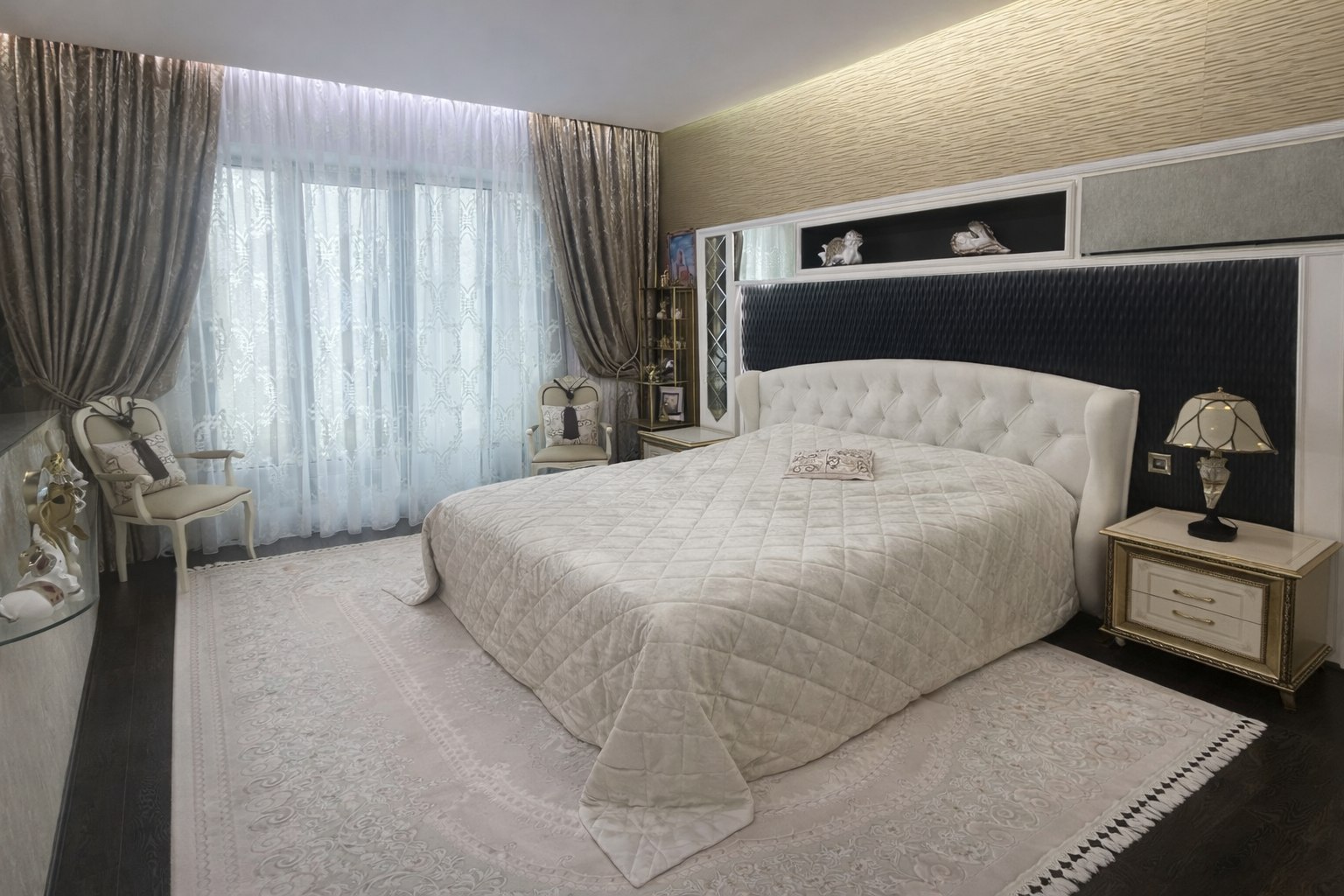 Можно приблизиться к эффекту, но точный результат зависит от света, размеров окна, высоты потолка и фактуры ткани. Мы подбираем решение, которое будет выглядеть так же дорого именно в вашем пространстве.